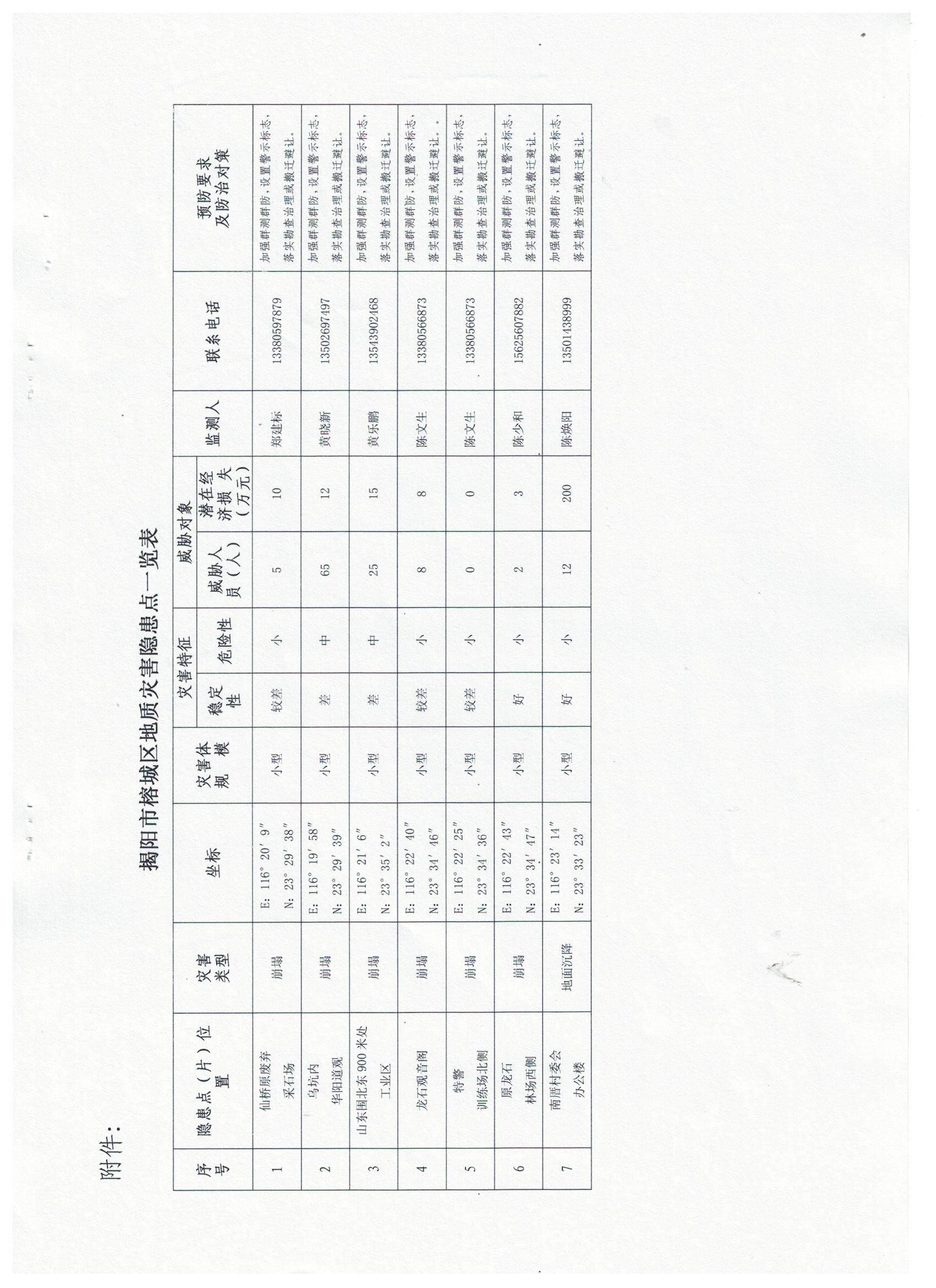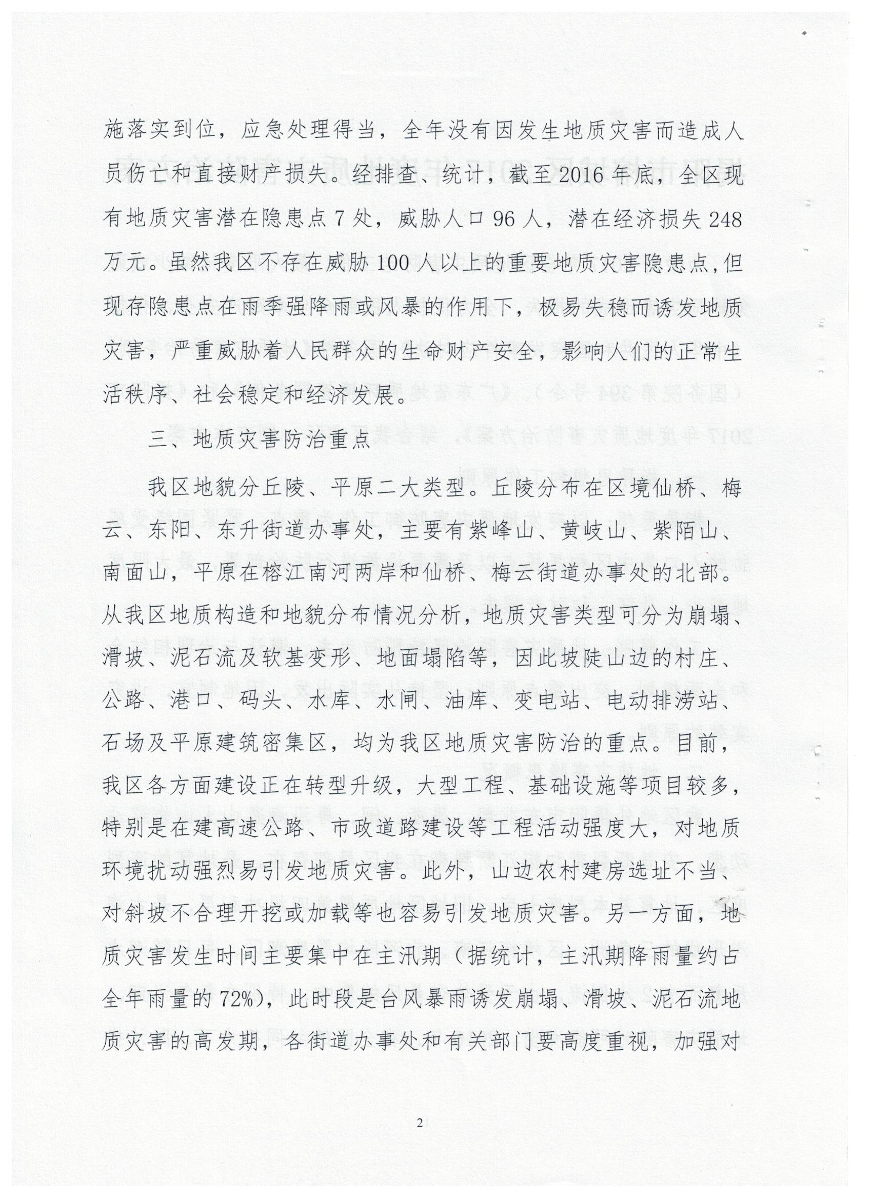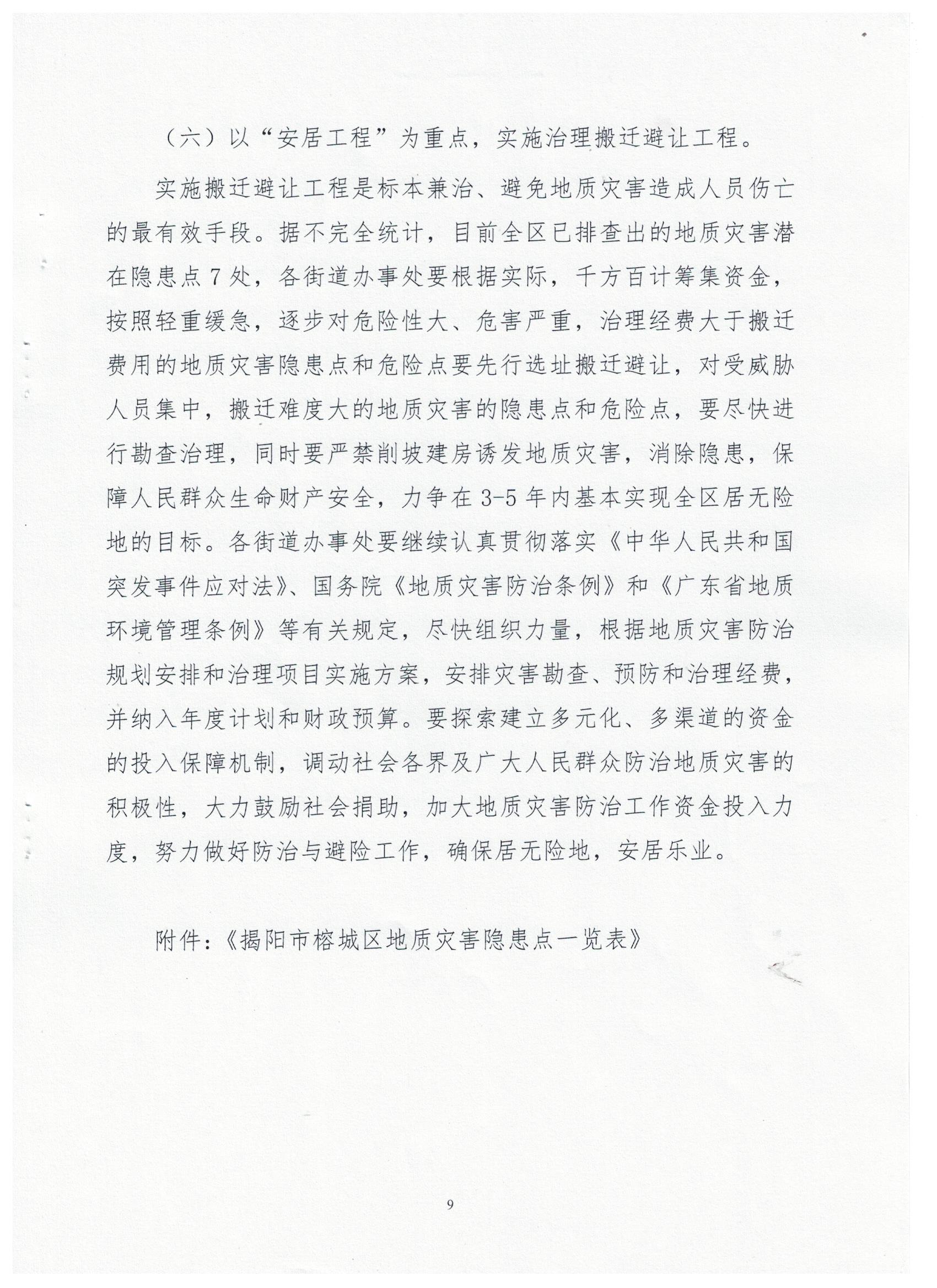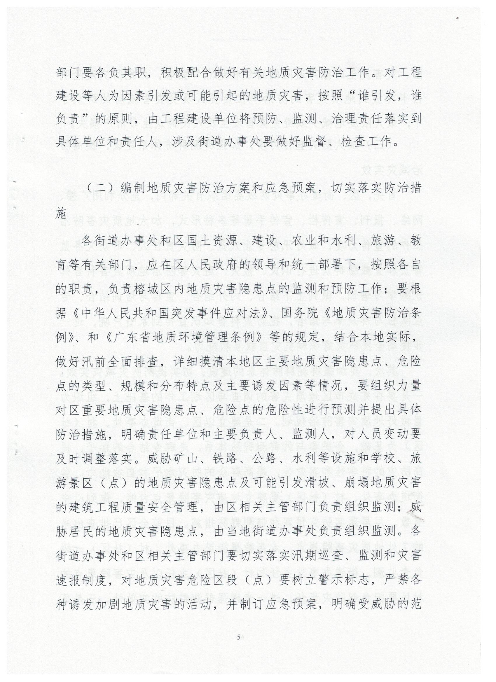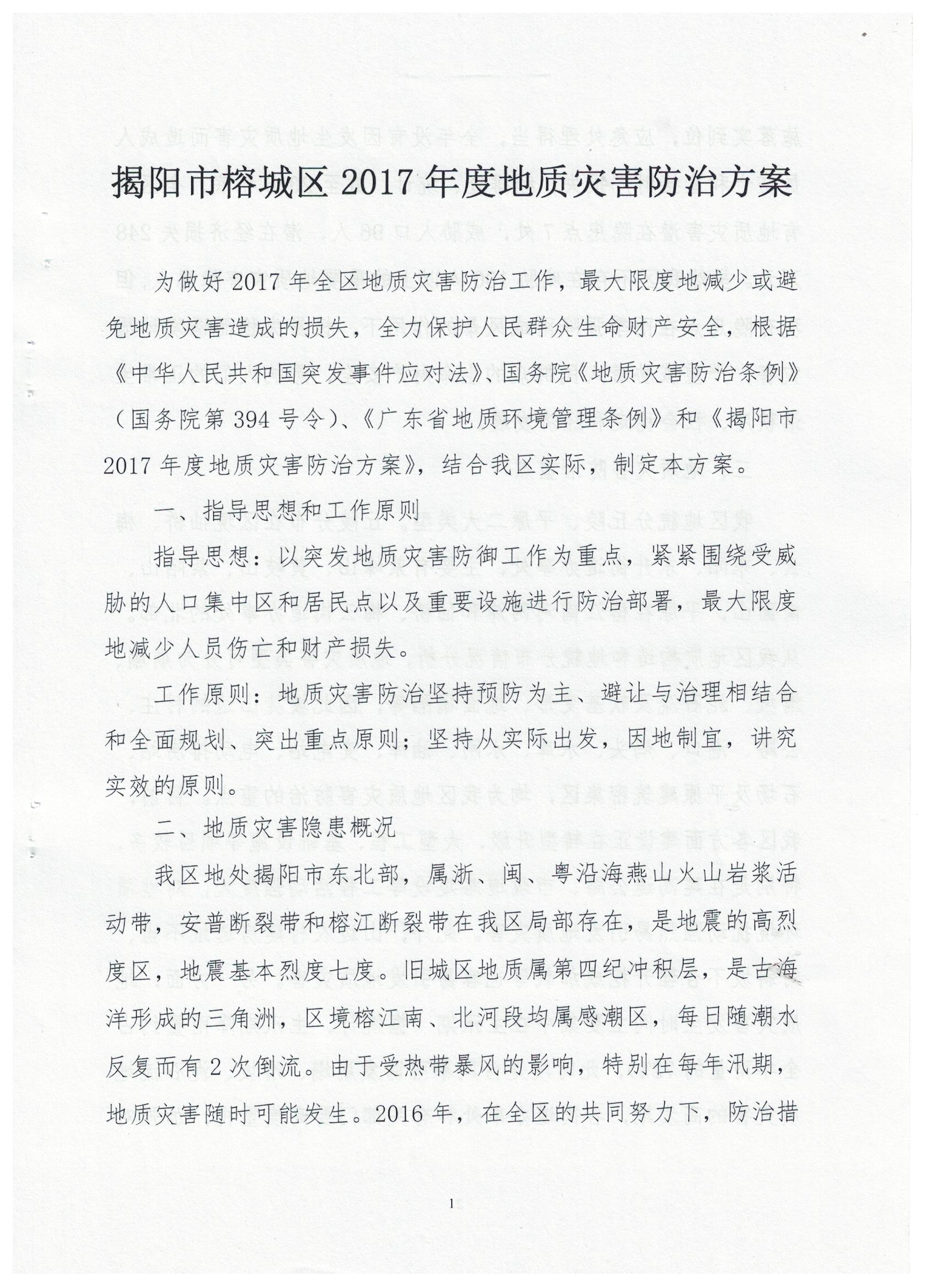 关于印发《揭阳市榕城区2017年度地质灾害防治方案》的通知