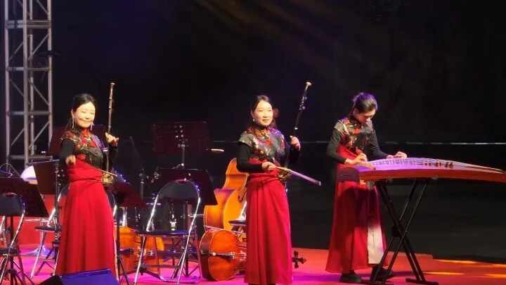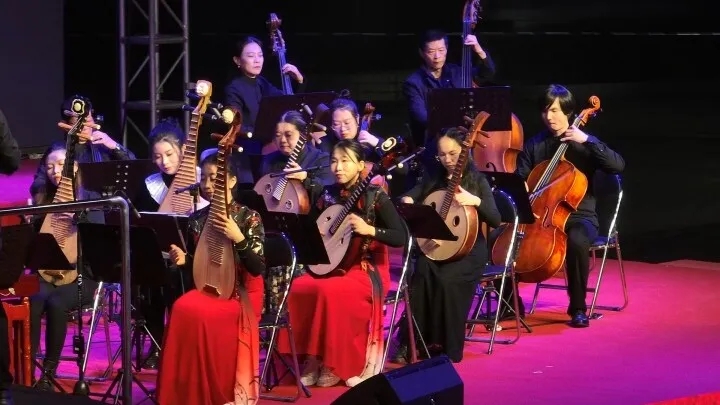 随着第二篇章“韵动古城”开启,笛子独奏《挂红灯》以活泼喜庆的节奏,仿佛点亮了榕城百姓生活中一盏盏幸福的灯火,映照出“百千万工程”下民生实事的落地成效——南山千万资金助力揭阳林超纪念中学二期工程竣工交付使用,卫健系统深度交流推动医疗服务提质,一桩桩一件件,如音符般谱写出温暖的民生乐章。民乐合奏《云宫迅音》则以奇幻飘逸的丝竹之音,寓意着千年古城在时代浪潮中焕发出崭新活力。
