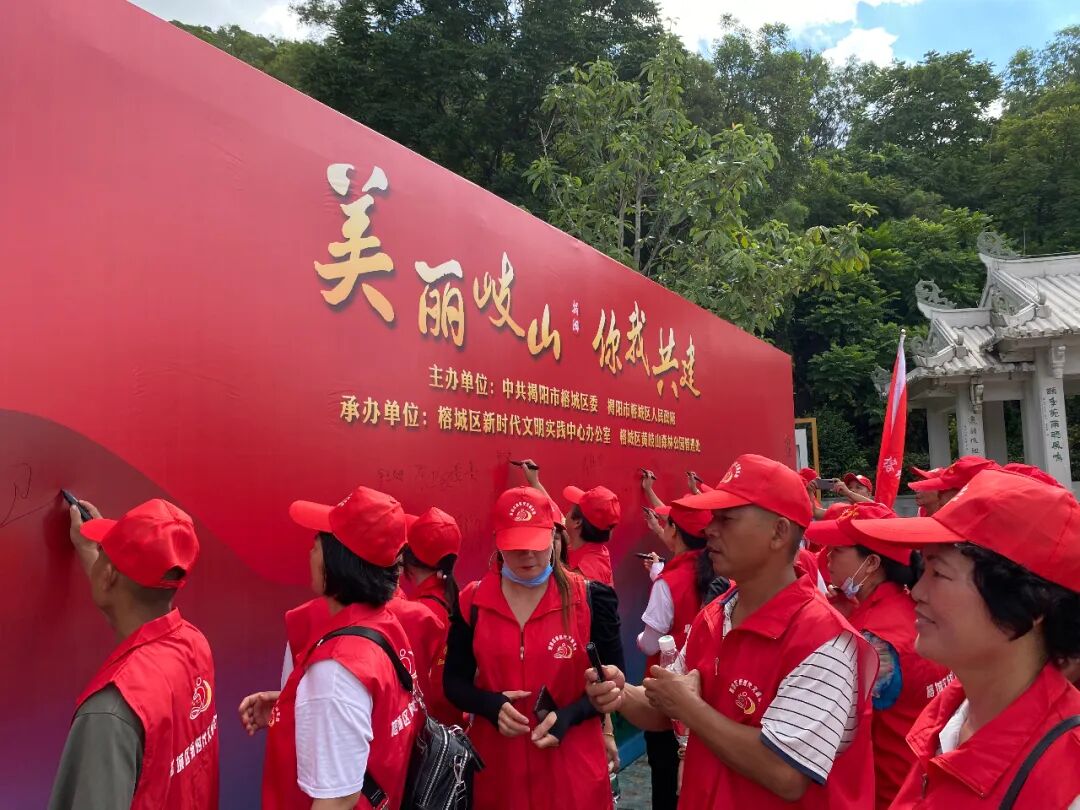 7月17日上午, 榕城区委、区政府办公室主办,区新时代文明实践中心办公室、区黄岐山森林公园管理处承办,区黄岐山森林公园管理处、区直有关单位和相关街道工作人员及志愿者等共150余人走进黄岐山森林公园,开展“美丽岐山・你我共建”环境卫生整治活动。对黄岐山森林公园脏乱差现象游道沿途垃圾进行了清理,打造环境优美卫生整洁的森林公园。
