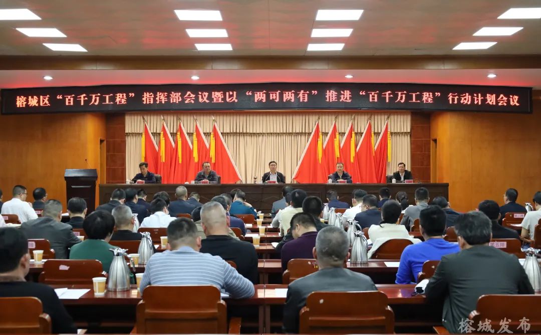 3月12日下午, 榕城区召开“百千万工程”指挥部会议暨以“两可两有”推进“百千万工程”行动计划会议,调度推动今年度重点工作,全力推进“百千万工程”三年初见成效,促进全区“百千万工程”工作不断走深走实。区委书记韦锋出席会议并作讲话,区委副书记、区长陈宏鑫主持会议。