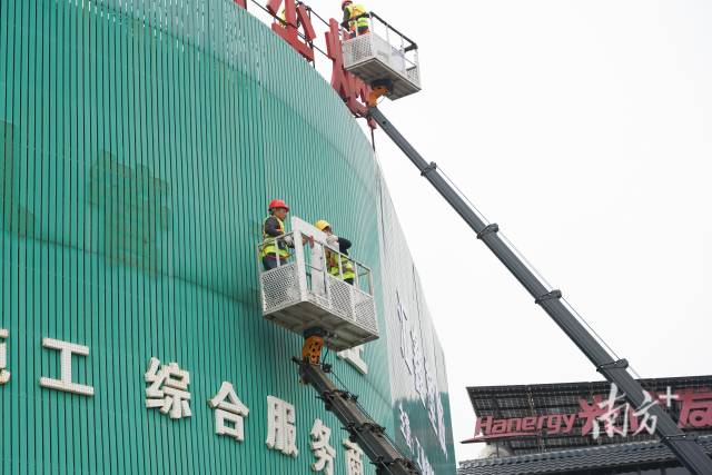 工人细致拆除招牌,最大限度减少对居民生产生活的影响。