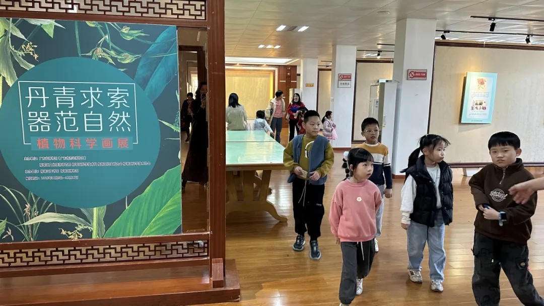 在五楼展厅,馆工作人员带领小朋友们参观“丹青求索 器范自然”植物科学画展。展览精选了多幅植物科学画作,涵盖“西方博物绘画的起源”“独具东方韵味的中华博物艺术”“中国植物科学画”三大板块,让小读者们在学习植物知识的同时,进一步激发了对自然生态的保护意识。