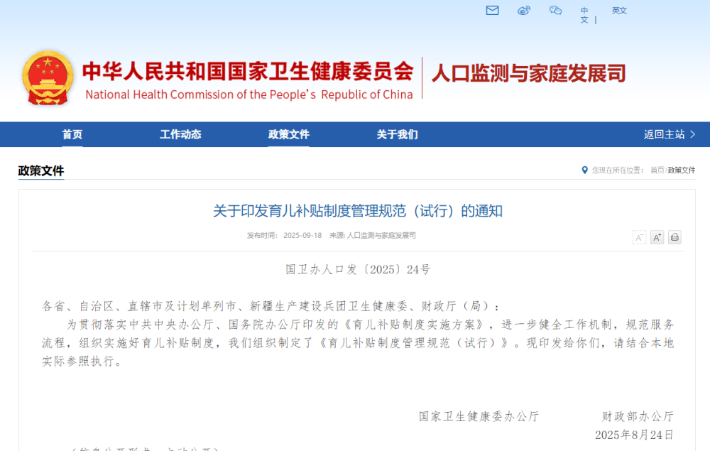 为贯彻落实中共中央办公厅、国务院办公厅印发的《育儿补贴制度实施方案》,进一步健全工作机制,规范服务流程,组织实施好育儿补贴制度,我们组织制定了《育儿补贴制度管理规范(试行)》。现印发给你们,请结合本地实际参照执行。