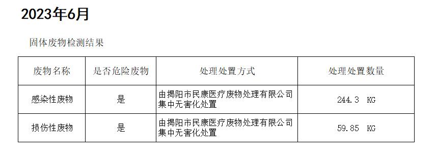 揭阳市榕城区人民医院2023年6月污水检测报告